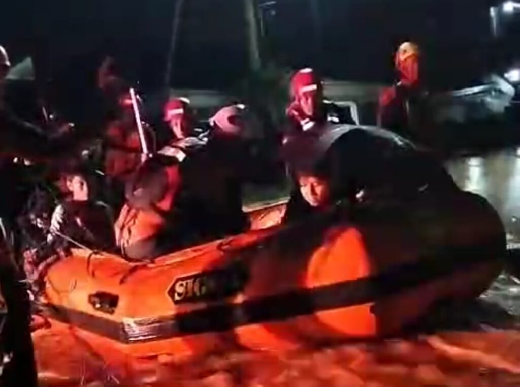 Basarnas Balikpapan melakukan evakuasi warga di malam hari.